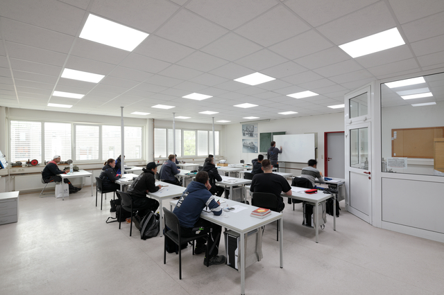In order to noticeably improve the concentration and performance of the trainees and to enable optimal vision without glare, three classrooms were equipped with state-of-the-art HCL lighting technology. The dismantling of the existing strip lighting with T8 fluorescent lamps and the installation of the new BIOLUX HCL system was to be carried out by the trainees of the electrical engineering department themselves. Preferably easy to implement as an in-house project under the supervision of their master electrician.