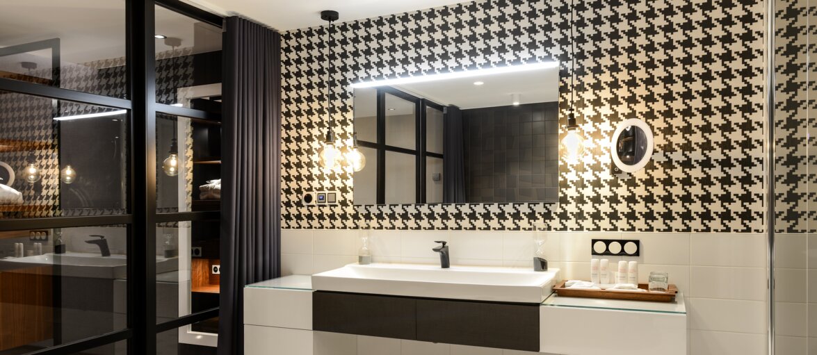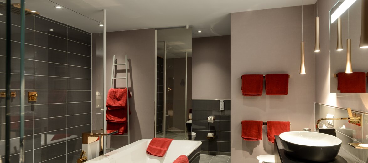 The lighting solution in the “Modern Serenity” and “Classic Monochrome” suites is part of the sophisticated interior design concept – the indirect cove lighting highlights the homely atmosphere, LED Spots place the focus on the high-quality interiors, while Vintage 1906 lamps set design accents.