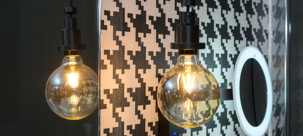 The lighting integrates very harmoniously into the interior design, since both lamps and luminaires as well as the light itself are used as design elements. While designer luminaires in the living and sleeping areas of the suites complement the high-quality interior design, Globe lamps from the LED Vintage 1906 Edition cast stylish light accents in the bathroom – installed as mirror lighting, the LED filament lamps with PenduLum Pro base are a real retro eye-catcher. Focus is clearly on the lighting effect with the LED spotlights from LEDVANCE, which were installed in the entrance area, bathroom, and kitchenette: the warm white accent lighting effectively draws attention to the modern interior. The cove lighting in the bedroom and living area, realized with flexible LED modules under the OSRAM brand, underscores the atmospheric ambiance in the suites with its pleasant, indirect light.