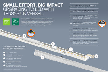 6 000, 8 600, 12 100 lm (jusqu'à 175 lm/W) permettent une utilisation à différentes hauteurs