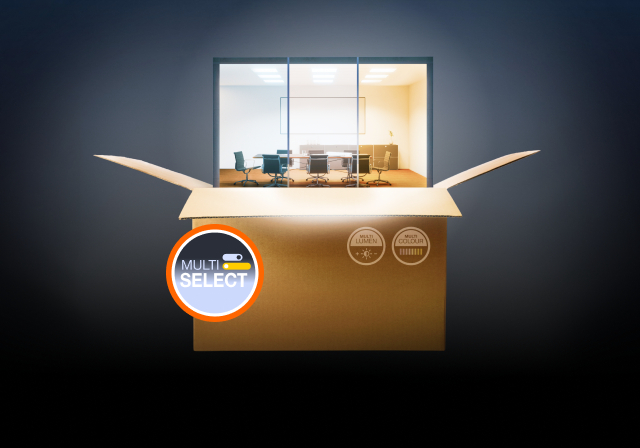 Gjør din daglige virksomhet enklere og mer fleksibel når det gjelder å alltid velge den optimale armaturen. Med MULTI SELECT-produkter fra LEDVANCE kan du lene deg tilbake og nyte forskjellige fargetemperaturer og lumenpakker i bare én armatur. Juster dem til ditt behov med et trykk på bryter - rett før installasjon.