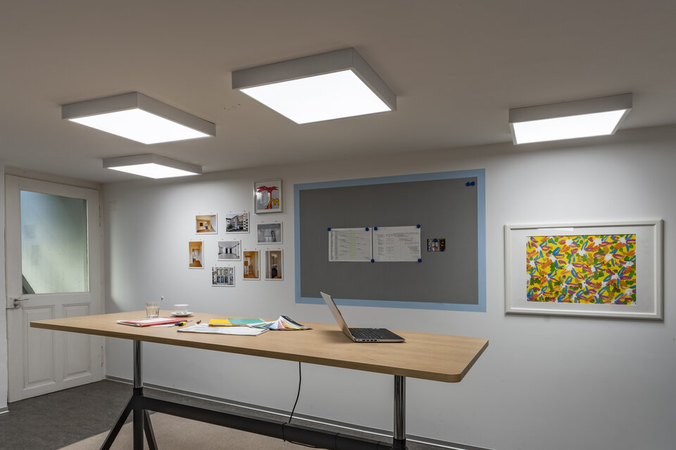 Kunden valgte det innovative VIVARES ZIGBEE-belysningssystemet fra LEDVANCE. Dette kombinerer rask installasjon, enkel igangkjøring og enkel håndtering med optimaliserte belysningsløsninger og effektiv energibruk. Det trådløse tilkoblede systemet egner seg spesielt godt til bruk i eksisterende bygg der for eksempel strukturelle forhold umuliggjør kabling. Dermed ble LEDVANCE VIVARES ZIGBEE-lysstyringssystem med BIOLUX HCL-PANEL ZIGBEE-armaturer, VIVARES ZIGBEE-SENSORER, VIVARES ZIGBEE-KOBLER og en VIVARES ZIGBEE-KONTROLL installert på kontoret og i møterom. Monteringen av BIOLUX HCL-PANEL ZIGBEE-armaturer i taket ble utført med LEDVANCE PANEL-OVERFLATEMONTERINGSSETT.