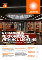LEDVANCE utstyrer Bayer 04 Leverkusen garderoben, treningsstudioet og spillerkorridoren i BayArena med HCL LED-striper, downlights og paneler som fremmer de profesjonelle fotballspillernes ytelse og velvære med optimal lyskvalitet og manuelt valgbare lysprofiler. Avhengig av behovene skapes enten en stimulerende eller avslappende lysstemning.