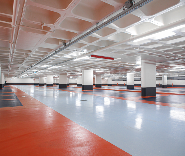 Den kjølige hvite lysfargen på 4000 K gjør alt mye mer synlig i parkeringshuset. Delvis på grunn av bruken av LEDVANCE Connected-systemet bruker ikke belysningen 100 % lysstyrke hele tiden når det ikke er nødvendig. Parkeringshuset er tross alt døgnåpent.