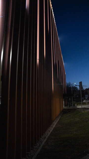 De varierende stripelengdene som arkitektene har valgt, gir bygningen en naturlig og moderne karakter. Bruken av RGBW LED striper gir ikke bare mulighet for fargevalg, men også intenst hvitt lys takket være den dedikerte hvite kanalen..