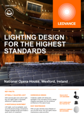 LEDVANCE moderniserer belysningen ved National Opera House i Wexford, Irland, ved å oppgradere foajeen, baren, auditoriet, korridorene og trappeoppgangene med LED-striper og et utvalg Tracklight, spot og utenpåliggende lys. Den nye belysningen forbedrer kvaliteten, reduserer energikostnadene og reduserer vedlikeholdsinnsatsen samtidig som den integreres sømløst i bygningens arkitektur.