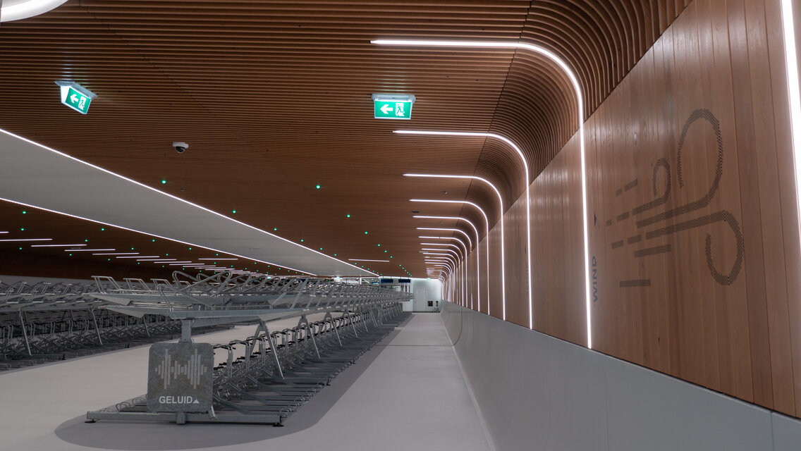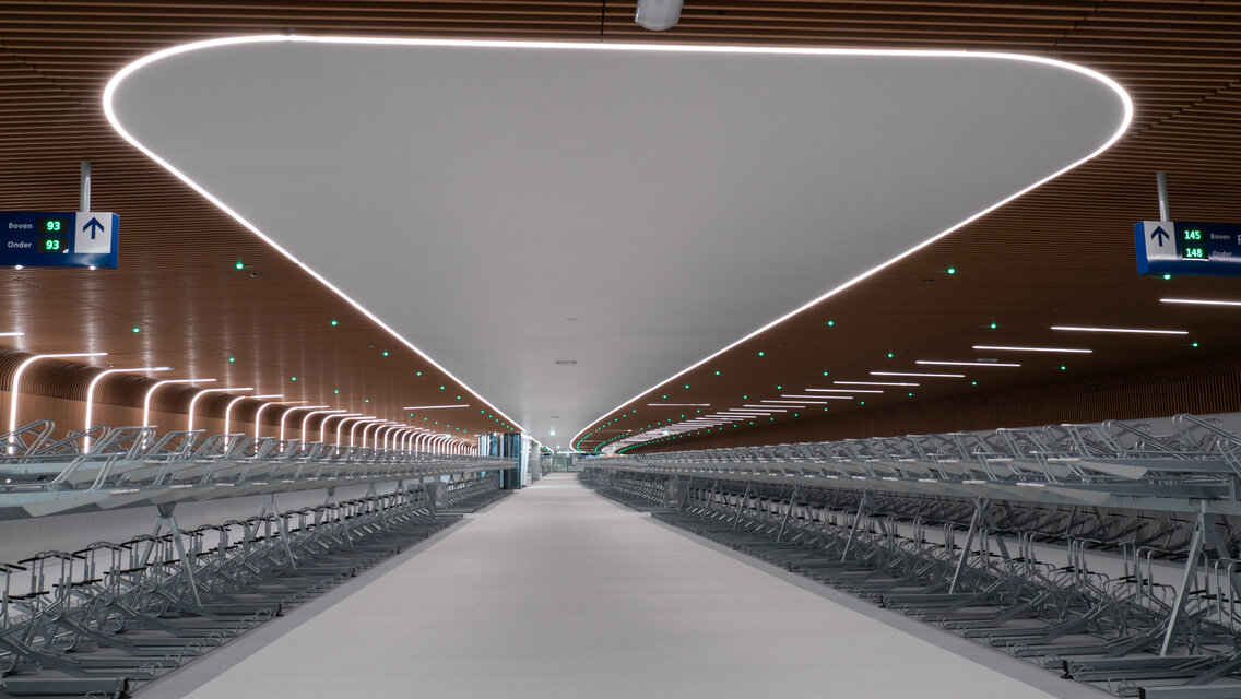 For å møte behovet for ytterligere sykkelparkering i Amsterdam, ble det bygget en stor underjordisk garasje under IJ-kanalen, som ga plass til 4000 sykler. Parkeringsanlegget krevde en innovativ belysningsløsning som sømløst blandet seg med den arkitektoniske utformingen, prioriterte energieffektivitet, avansert teknologi og sikret brukersikkerhet og komfort.