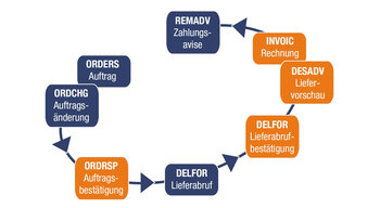 EDI (Electronic Data Interchange) refererer til elektronisk utveksling av data mellom forretningspartnere via standardiserte kommunikasjonsveier (f.eks. GXS-postkasse) og standardiserte meldingsformater (f.eks. ORDERS = ordre) som er definert av relevante organisasjoner (f.eks. VDA, UN).