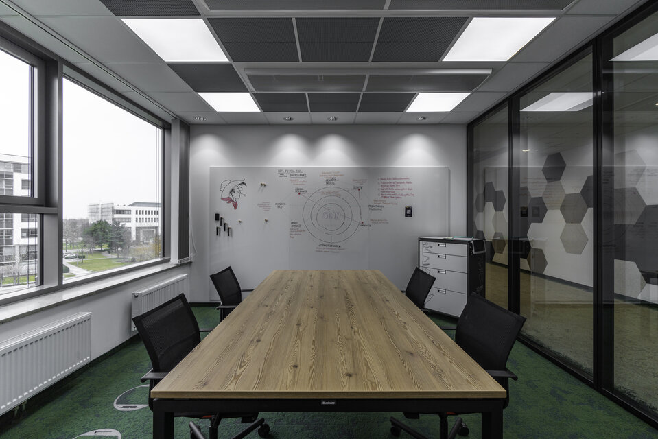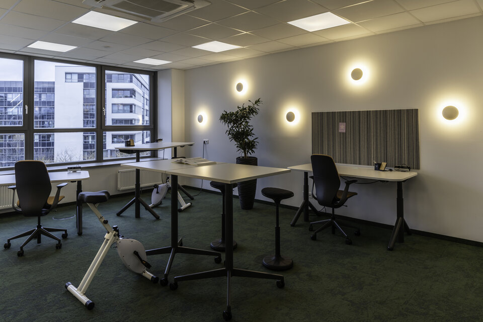 Særlig arbeidssituasjoner som krever høy konsentrasjon støttes også i Business Campus Hub. Derfor ble to kontor- og møterom utstyrt med BIOLUX HCL-systemet, som støtter konsentrasjon, motivasjon og velvære ved dynamisk å tilpasse lyset til dagslysets naturlige endringer. I tillegg kan forskjellige lysmoduser fra Focus til Relax manuelt stilles inn for BIOLUX HCL PANEL- og BIOLUX HCL DOWNLIGHT-armaturene med BIOLUX HCL-KONTROLLENHETEN, slik at lyset kan tilpasses den respektive arbeidssituasjonen.