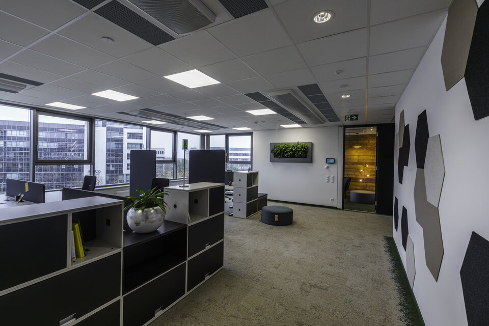 Moderne kontorer er mer enn bare funksjonelle arbeidsplasser. De bør heller skape et miljø som positivt påvirker motivasjonen, trivselen og produktiviteten til ansatte, fremmer lagånd og gir arbeidsgiveren en mer positiv profil ved å være et sosialt sted preget av samarbeid. Med dette i tankene bygde Business Campus Management GmbH sammen med utvalgte partnere det utleiebare Business Campus Hub i Garching som fremtidens kontor med et areal på ca. 500 kvm, for å skape merverdi for bedrifter og ansatte og dermed også fremme utleie av kontorplass. Til dette formålet søkte de et belysningskonsept som skulle oppfylle alle kravene til en innovativ kontorbelysning, og gjøre det spesielt attraktivt for bedrifter å leie ut kontorlokaler her.