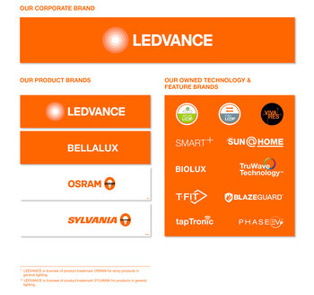 LEDVANCE er en av verdens ledende selskaper i belysningsbransjen, og utvider for å bidra til løsninger for fornybar energi. For å gjenspeile vårt brede utvalg av produkter og løsninger, tilbyr vi en rekke varemerker under LEDVANCE-merket. Under varemerket LEDVANCE selger vi et omfattende utvalg av produkter til bolig-, nærings- og industriformål. Etter avtale med OSRAM selger vi også et stort utvalg produkter under varemerkene OSRAM og SYLVANIA. I tillegg har vi en rekke varemerker for våre egne teknologier og funksjoner, som lysstyringssystemet VIVARES, PHASE EV™-ladeinfrastruktur og BIOLUX Human Centric Lighting-systemet.